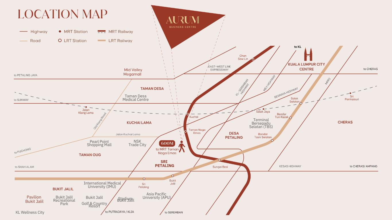More than just a development, Aurum Business Centre is a symbol of ambition, prestige, and modern urban living. Strategically located in Sri Petaling, this dynamic mixed-development is the perfect synergy of sophisticated suites, premium retail spaces, and contemporary o ices, designed for those who dare to lead, innovate, and shape the future.